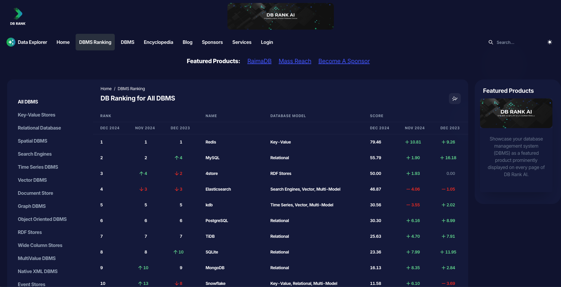 DB Rank.AI is an innovative platform dedicated to helping businesses compare and evaluate databases based on performance, scalability and cost. Their mission is to simplify the decision-making process for professionals in the tech industry by providing detailed insights into the best database solutions on the market.