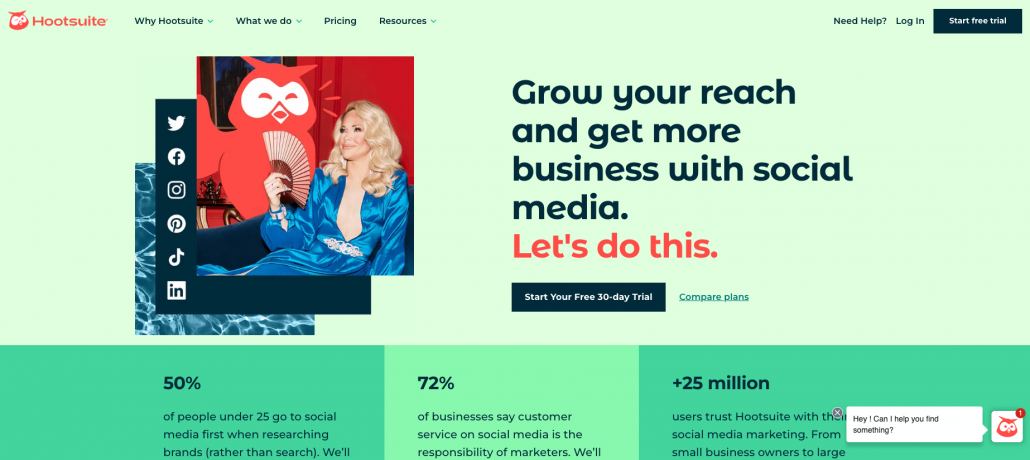 Hootsuite is used by over 18 million people and more than eight hundred Fortune 1000 companies. Hootsuite’s features include the ability to schedule, monitor and analyze posts across multiple social channels and collaborate with other team members.
