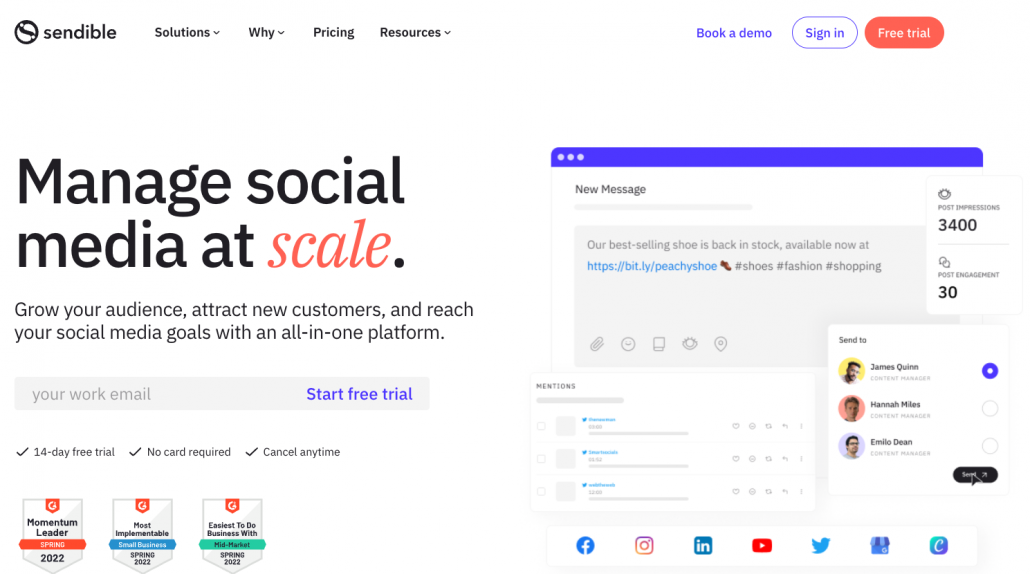 Sendible is a social media management tool built specifically for agencies with several clients. Sendible’s features include the ability to schedule posts, create bulk campaigns and collaborate with other team members.